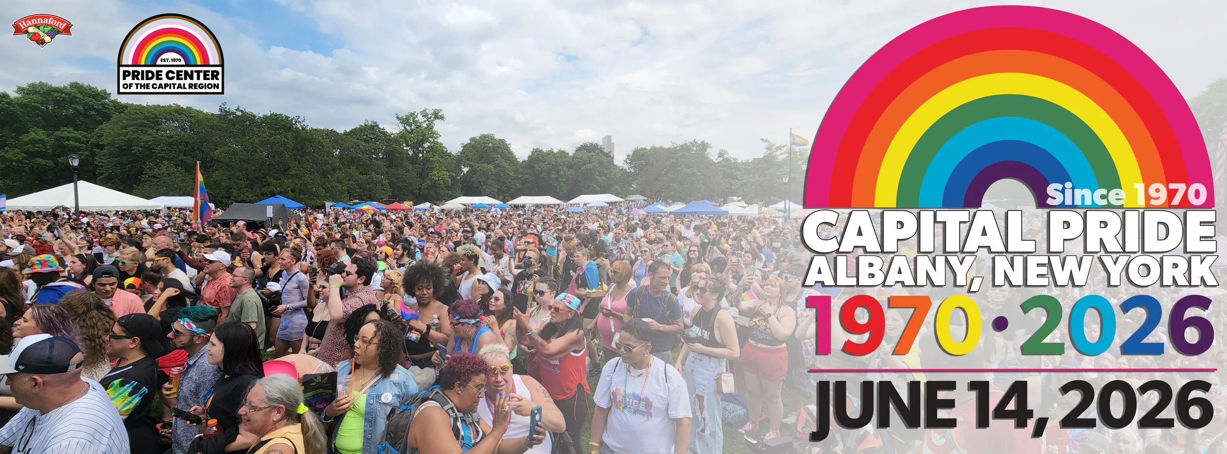 The Pride Center of the Capital Region is excited to announce the 2026 Capital PRIDE Parade and Festival on Sunday June 14, 2026 in Albany's historic Washington Park. The Capital Pride Parade Kicks Off at 11:30AM starting down State St. onto Lark Street and then Madison Ave. Capital Pride 2026 is Presented by Hannaford Supermarkets.